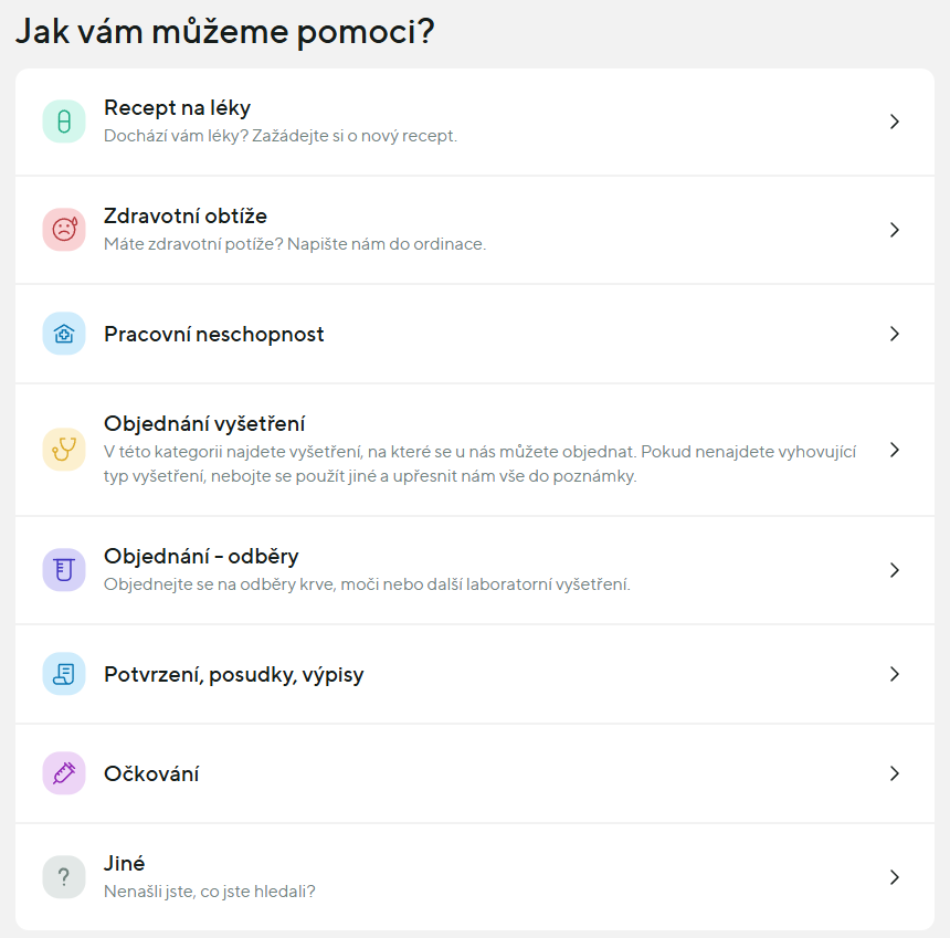 Bez ohledu na naše ordinační hodiny můžete online požádat o recepty na léky, objednat se k vyšetření, rezervovat si očkování apod. Obratem potvrdíme převzetí vašeho požadavku.